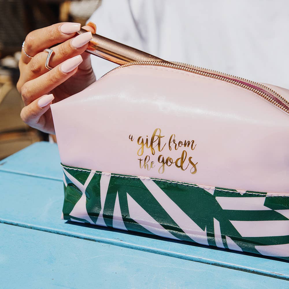Square Make-Up Bag Tropical A Gift From The Gods Pink Green