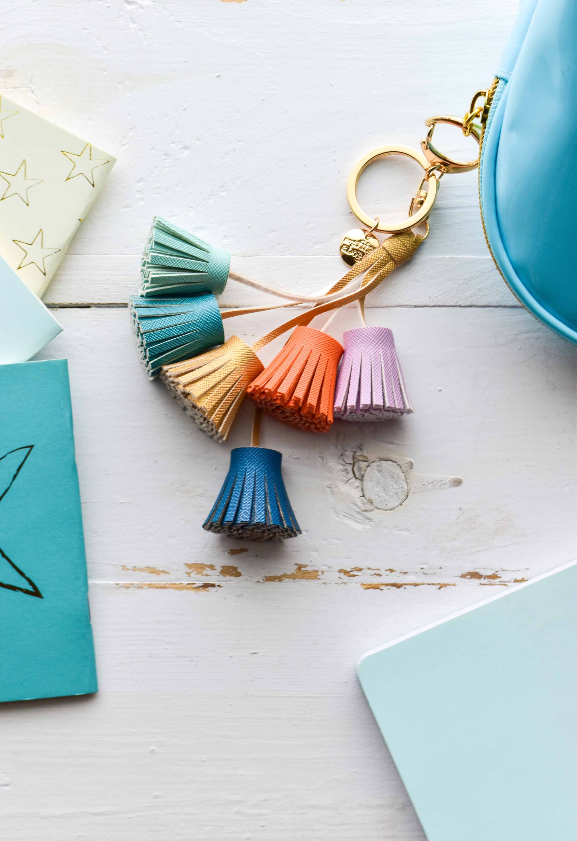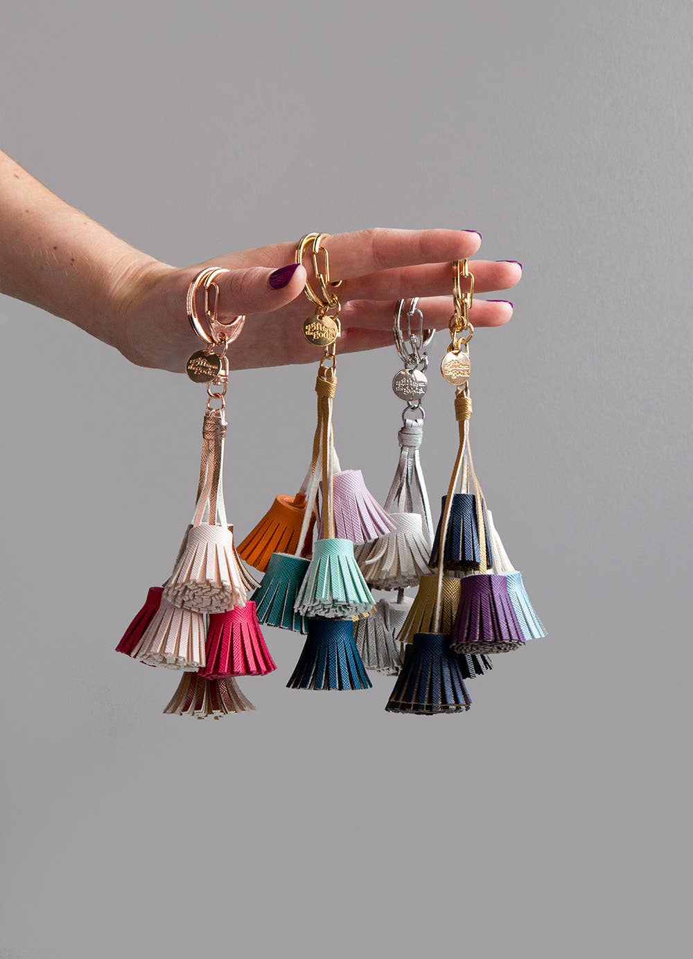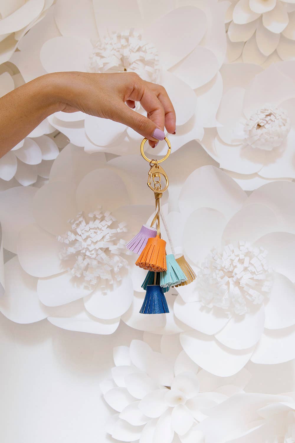 • Fashion keyring made up of six mini tassels in a mix of colours