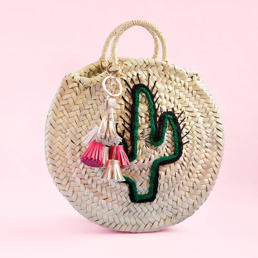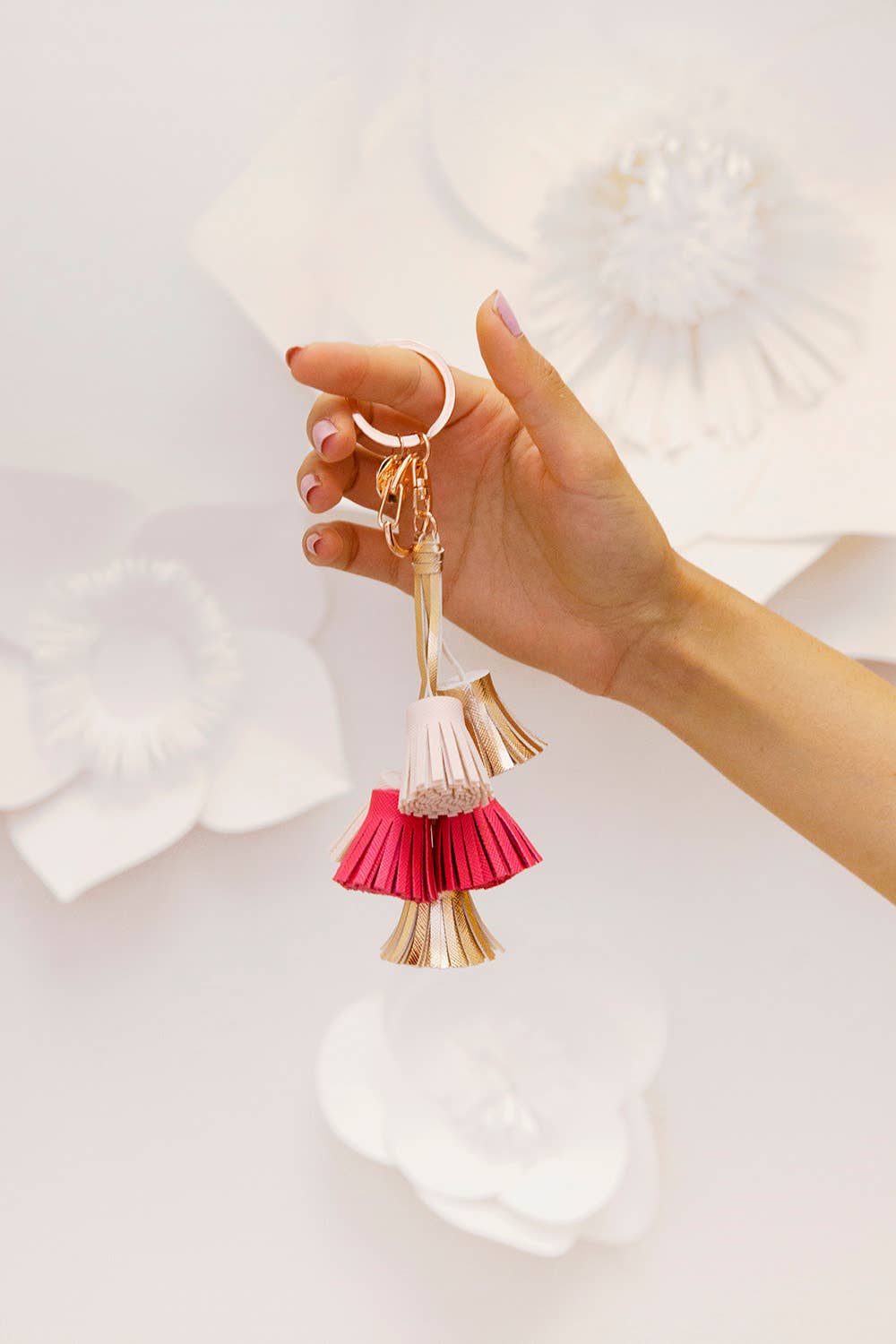 For The Goddess Who Loves All Things Pink – rose gold keyring with pale pink, rose gold and hot pink tassels.